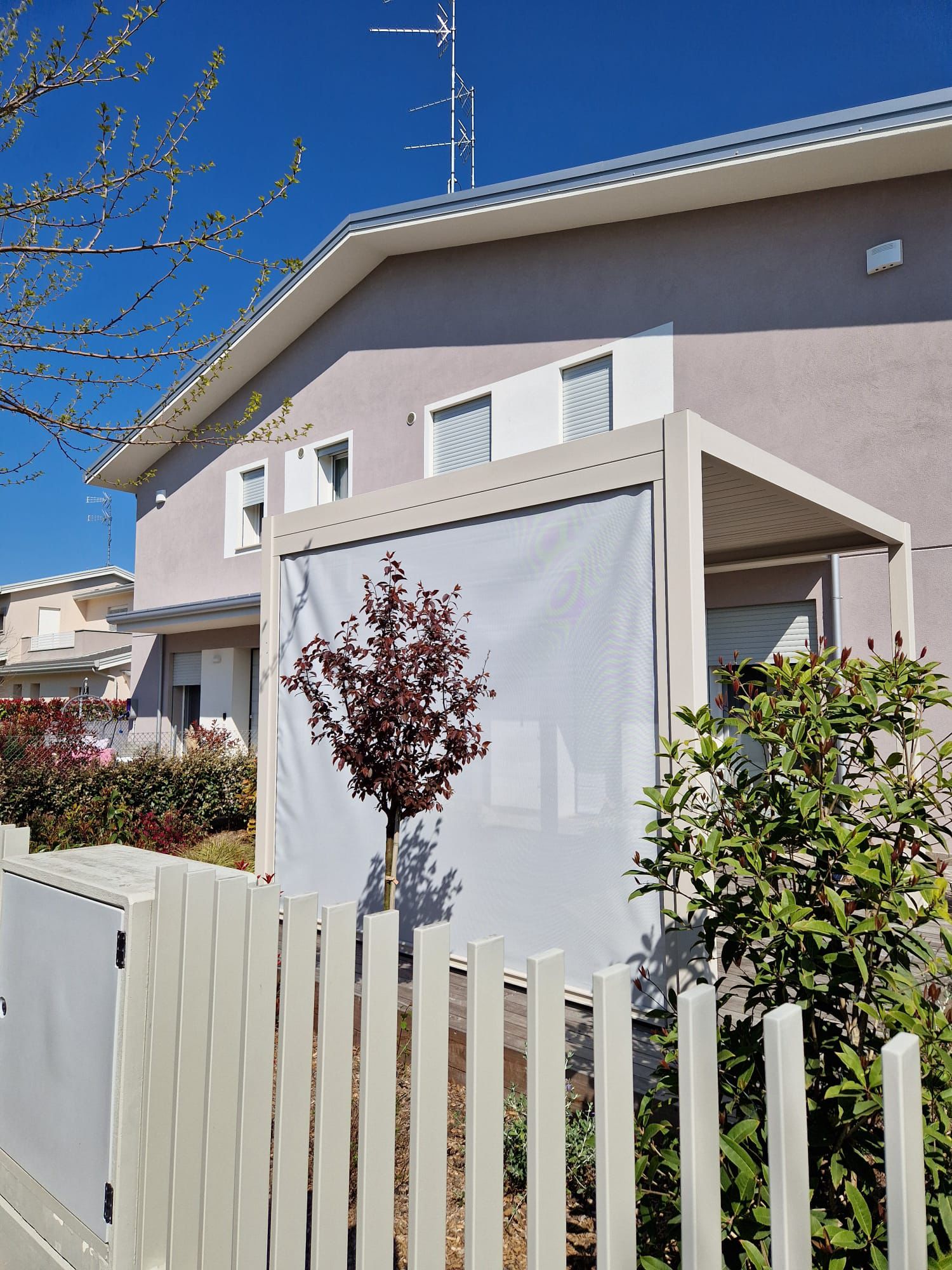 Aggiungi un tocco di classe alle nostre pergole bioclimatiche con tende motorizzate, un’opzione che combina stile e funzionalità.